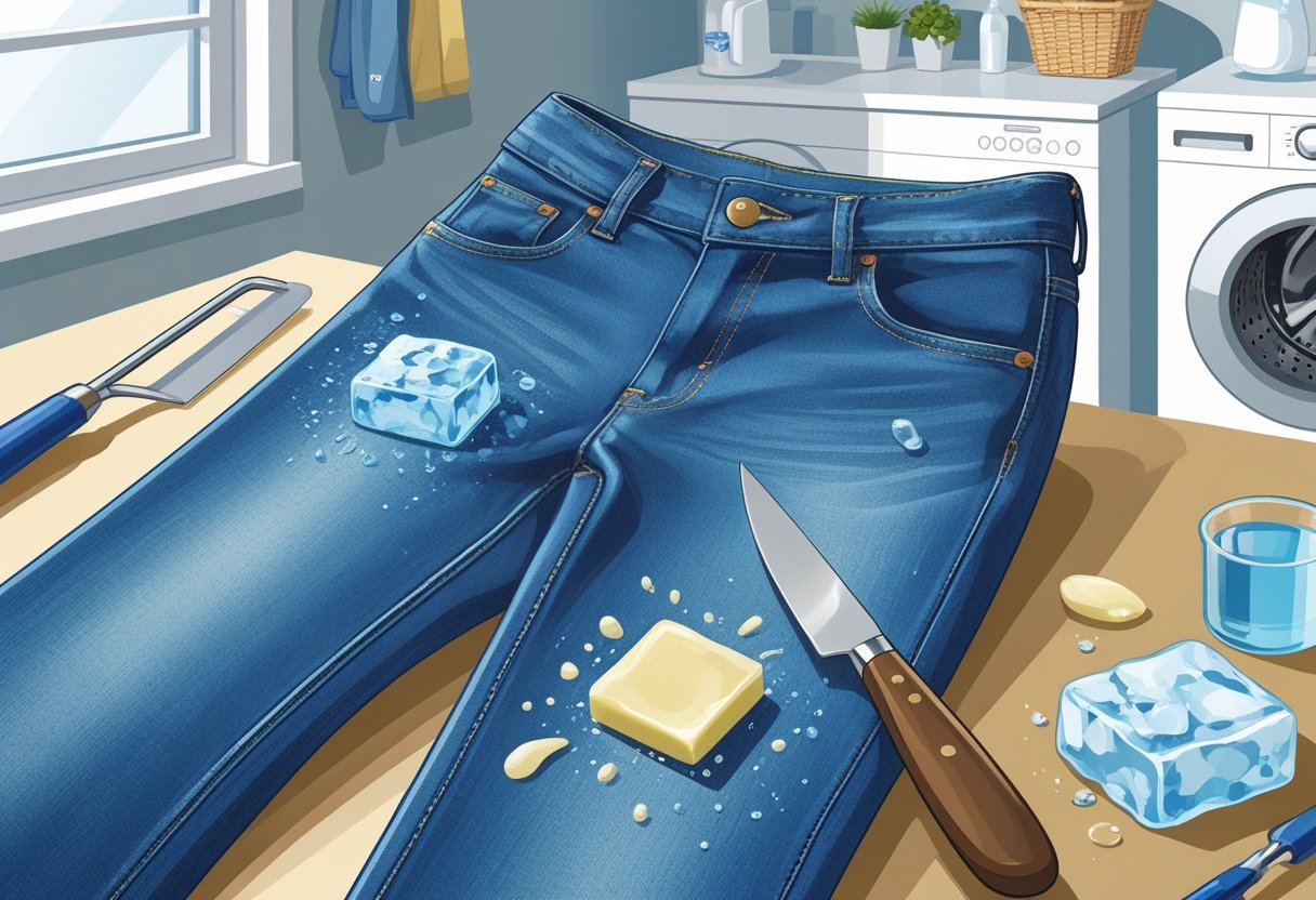Pirmiausia, džinsus galima lengvai išvalyti, jei žinosite keletą paprastų trikdžių. Šaldymas, naudojant ledą, yra vienas iš geriausių metodų, nes šalta temperatūra sukietina gumą ir leidžia ją lengvai nuimti. Be to, actas taip pat gali padėti, ypač jei guma jau įsigėrusi.