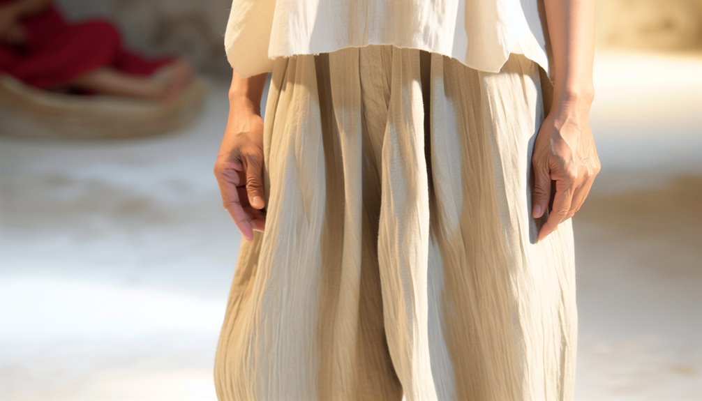 Vienas iš svarbiausių lino audinio bruožų yra natūralus kritimas, tačiau būtent dėl to jūsų kelnės gali atrodyti platesnės, nei tikėjotės. Kai apsivelkate lininės kelnes, audinys dažnai atsipalaiduoja ir laisvai krinta nuo kūno, ypač jei pasirinkote laisvesnį modelį. Šis laisvas kritimas gali suteikti daugiau apimties klubų ir šlaunų srityje, kartais sukuriant didesnės apimties siluetą, nei norėjote. Lino lengvumo pojūtis leidžia jam laisvai kristi, tačiau jei medžiaga per stora arba modelis nėra prigludęs, pastebėsite dar daugiau pločio. Be to, linas lengvai glamžosi, todėl praranda formą ir dar labiau sustiprina „platesnės“ išvaizdos efektą. Rinkdamiesi kelnes su prigludusiu arba siaurėjančiu modeliu galėsite mėgautis lininio audinio komfortu neatsisakydami dailesnės, lieknesnės išvaizdos.