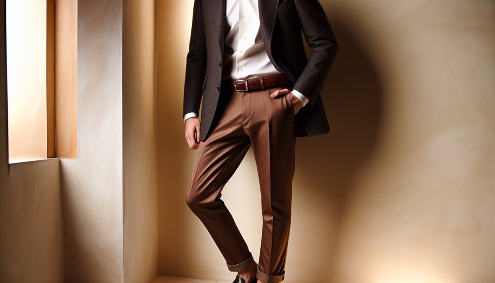 Kadangi jūsų rudų kelnių audinys atlieka svarbų vaidmenį, kaip sąveikauja spalvos, svarbu atsižvelgti į tekstūrą, svorį ir paviršiaus apdailą, renkantis, ką prie jų vilkėti. Audinio pasirinkimas tiesiogiai įtakoja jūsų bendrą spalvų paletę. Pavyzdžiui, vilnonės ar šilkinės rudos kelnės paprastai pagilina atspalvius, todėl galite derinti sodresnes spalvas, o medvilninės ar lininės – sušvelnina viską, todėl tinka šviesesni tonai. Faktūriniai audiniai, tokie kaip velvetas, sustiprina žemišką šilumą, todėl puikiai dera su šiltais atspalviais, tokiais kaip rūdžių ar garstyčių spalva. Be to, blizgių audinių spindesys gali išryškinti spalvas, o matiniai audiniai jas prislopina. Nepamirškite, kad sezoniniai audinių pasirinkimai taip pat svarbūs – vasaros linui tinka pastelinės spalvos, o žiemos vilnai – sodresni tonai.
