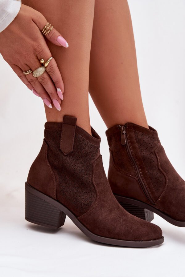 S.Barski moteriški kaubojaus stiliaus batai yra madingas pasirinkimas, kuris puikiai papildys jūsų pavasario aprangą. Pagaminti iš ekologiškos odos. Šio modelio išskirtinis bruožas yra ažūrinis raštas ant batų viršaus, kuris suteikia jiems lengvumo ir originalumo. Batai turi stabilų, pasvirą kulną, kuris užtikrina patogumą vaikštant ir suteikia stilingą vakarietiško stiliaus įkvėptą išvaizdą. Migdolo formos pirštai vizualiai lieknina pėdą ir pabrėžia moterišką batų charakterį. Šis modelis puikiai tinka tiek kasdieniams, kasdieniems aprangos deriniams, tiek išraiškingesniems stiliams su boho akcentais. Renkantis dydį, prašome remtis dydžių lentele.
