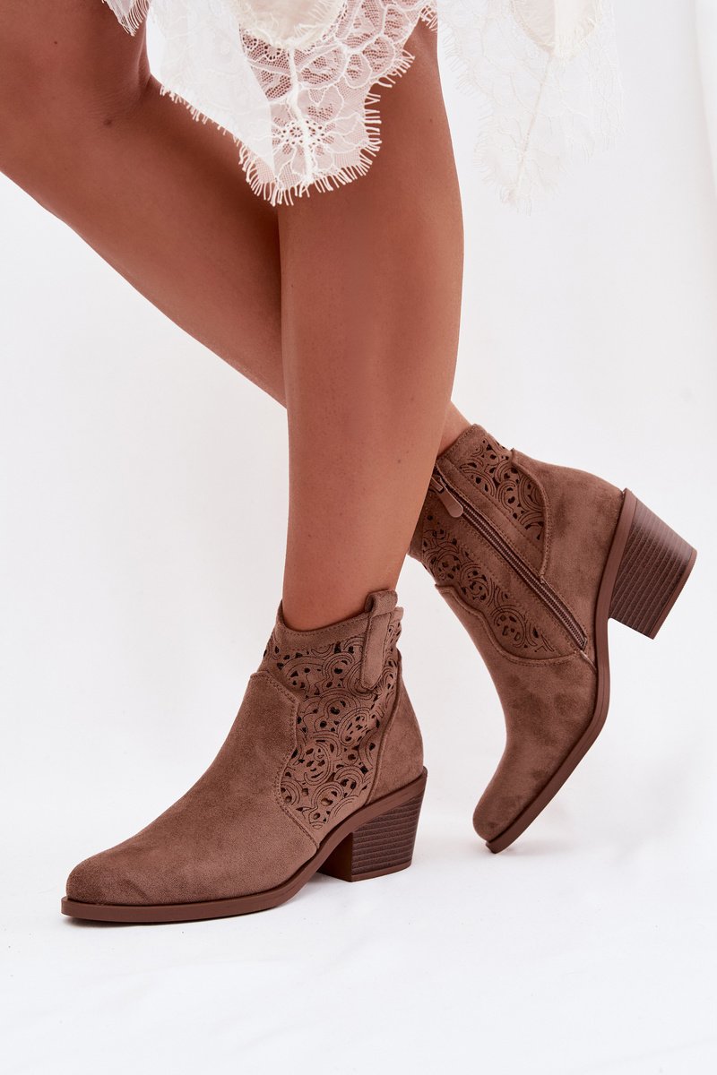 Akių kaubojų batai moterims su kulnais S.Barski HY61-8012 Rudi