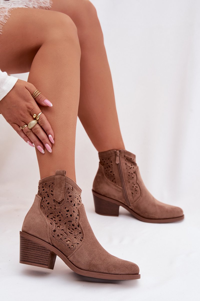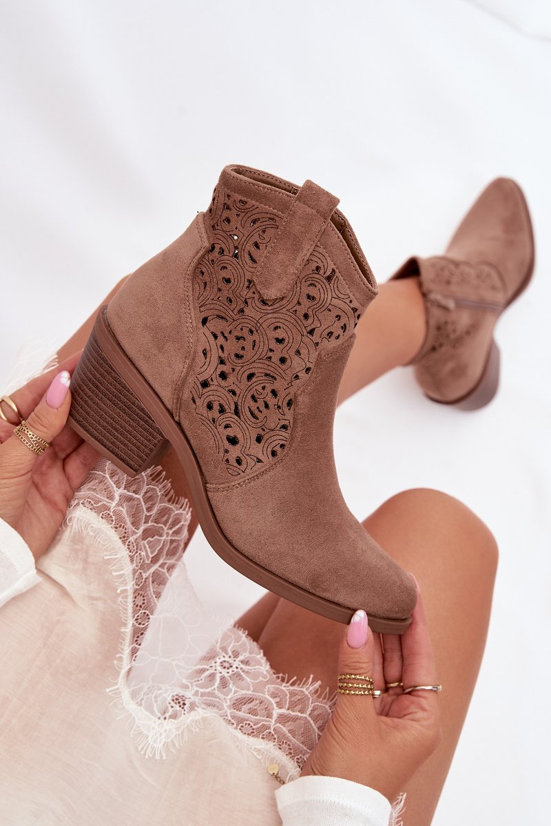 Moteriški aulinukai iš prekės ženklo S.Barski, įkvėpti kaubojiško stiliaus, yra įspūdingas akcentas pavasario stiliuose. Pagaminti iš ekologiškos zomšos, jie atrodo lengvi ir stilingi, o anginė viršutinė dalis suteikia jiems originalų, patrauklų charakterį. Stabilus, siaurėjantis kulnas užtikrina patogumą ir nuoroda į vakarietišką atmosferą. Migdolinė nosis subtiliai ilgina koją, pabrėždama moterišką siluetą. Šie auliniai batai puikiai tinka tiek kasdieniams deriniams, tiek išraiškingesniems boho stiliams. Renkantis dydį, vadovaukitės dydžių lentele.