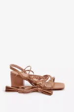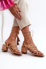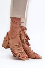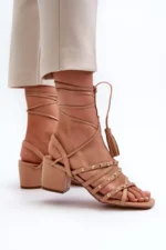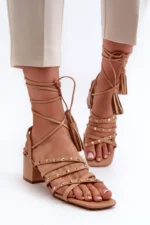 Šios elegantiškos moteriškos sandalai su žemais kulniukais ir raišteliais yra pagaminti iš tvarios dirbtinės odos, kas užtikrina ilgalaikį komfortą ir stilių. Priekis puoštas kryžminiais dirželiais su papildomu kniedžių dekoru, suteikiančiu modeliams unikalaus žavesio. Idealiai tinka vasaros dienoms, šios basutės taps puikiu jūsų vasaros garderobo aksesuaru, suteikdamos stilingumo ir originalumo. Pasirinkdamos dydį, naudokitės dydžių lentele.