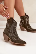 Atraskite modernų ir išskirtinį stilių su šiais tamsiai žalios spalvos, aukštos kokybės Lelira dailiais kaubojiškais moteriškais batais. Pagaminti iš ekologiškos zomšos, šie batai pasižymi puikiu komforto ir stiliaus deriniu, o jų blokuotais kulnais suteikiamas stabilumas vaikščiojant.
