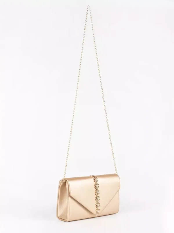 Auksinė sankabos rankinė su dekoratyviniais kristalais – tai prabangus aksesuaras, kuris papuoš bet kurią jūsų aprangą. Ši elegantiška rankinė yra subtiliai dekoruota glotniais kristalais, kurie suteikia ypatingo žavesio ir prabangaus akcento. Auksinė spalva puikiai dera su vakarinėmis suknelėmis bei kitomis iškilmingomis aprangos detalėmis.