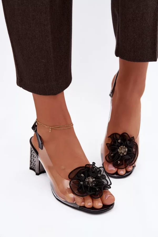 Elegantiški ir moteriški skaidrūs moteriški sandalai yra puikus pasirinkimas ypatingoms progoms. Stabilus keturkampis kulnas užtikrina komfortą ir žingsnio užtikrintumą, tuo pačiu subtiliai lieknina figūrą. Švelnus, permatomos medžiagos viršus suteikia lengvumo ir modernumo. Išskirtinis akcentas – dekoratyvinė tinklinė gėlė, suteikianti visumai romantiško ir stilingo įspūdžio. Sandalai segami sagtele su reguliuojamu dirželiu, leidžiančiu puikiai pritaikyti prie pėdos ir užtikrinančiu dėvėjimo patogumą. Tai puikus pasirinkimas suknelėms, vakarinei aprangai ir iškilmingoms progoms, kuriose svarbu elegancija ir detalės.