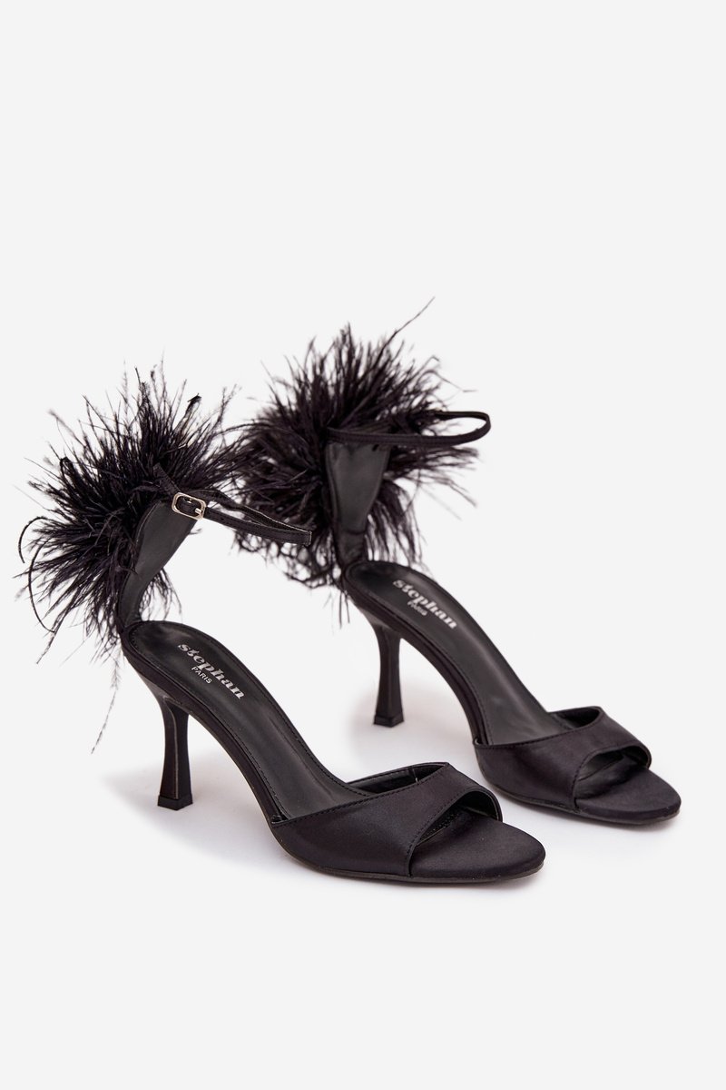 Moteriški sandalai, pagaminti iš švelnios tekstilės medžiagos, – tai pasiūlymas moterims, kurios mėgsta išsiskirti stiliumi. Elegantiškas aukštakulnis batų modelis paryškina kojas ir suteikia figūrai elegancijos. Dirželis aplink kulkšnį su sagtimi užtikrina stabilumą ir efektyviai išryškina pėdą. Didžiausias šio modelio privalumas – dekoratyvinės plunksnos, kurios suteikia batams lengvumo, originalumo ir išskirtinio charakterio. Tai idealūs sandalai ypatingoms progoms, vakariniams pasimatymams ar vakarėliams, kai norite stebinti savo išvaizda.