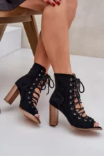 Sandalai su juostele ir raišteliais – juodas Ivelseki: elegantiškas ir tvarus pasirinkimas karštoms dienoms. Pagaminti iš minkštos imitacinės zomšos, šie sandalai suteikia prabangos pojūtį ir patogumą. Juostelė aplink kulkšnį suteikia stabilumo ir elegancijos, tuo pačiu įgalindama lengvą užsegimą. Tvirtas blokinis kulnas užtikrina komfortą kasdieniniam dėvėjimui.