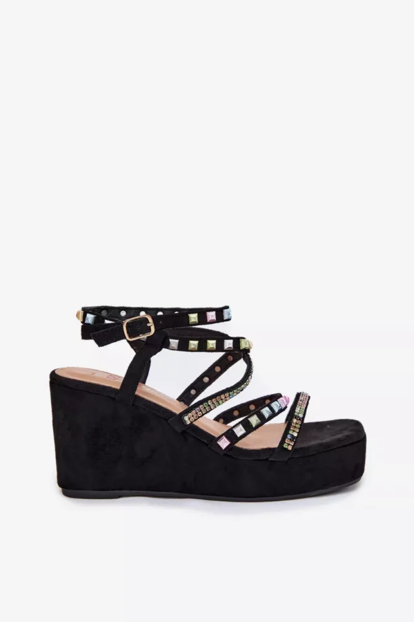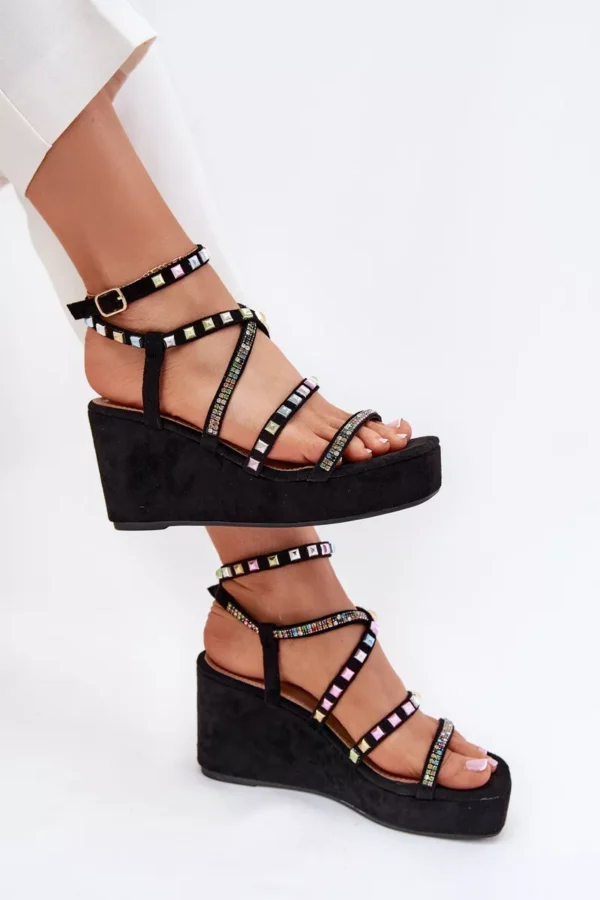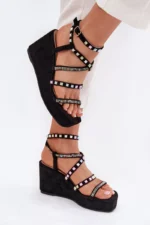 Damski sandalai ant platformos su puošmena ant juostelių – šie stilingi juodi batai pavers bet kokį drabužių komplektą ypatingu. Pagaminti iš aukštos kokybės medžiagų, šie sandalai ne tik atrodo puikiai, bet ir užtikrina komfortą visą dieną. Tai puikus pasirinkimas vasaros sezonui. Modelis su aplikacijomis ir detalėmis ant juostelių suteikia batams ypatingos prabangos.