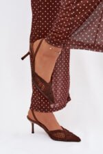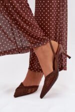 Moteriški sandalai, pagaminti iš įspūdingos pynės medžiagos, yra puikus pasirinkimas įvairioms progoms. Plonas kulnas gražiai lieknina figūrą ir suteikia stiliui moteriško lengvumo. Smailūs pirštai pabrėžia klasikinį, elegantišką dizainą ir suteikia visam modeliui nesenstantį išvaizdą. Šis modelis puikiai tinka kaip stilingas akcentas prie suknelių ir kelnių. Renkantis dydį, prašome remtis dydžių lentele.