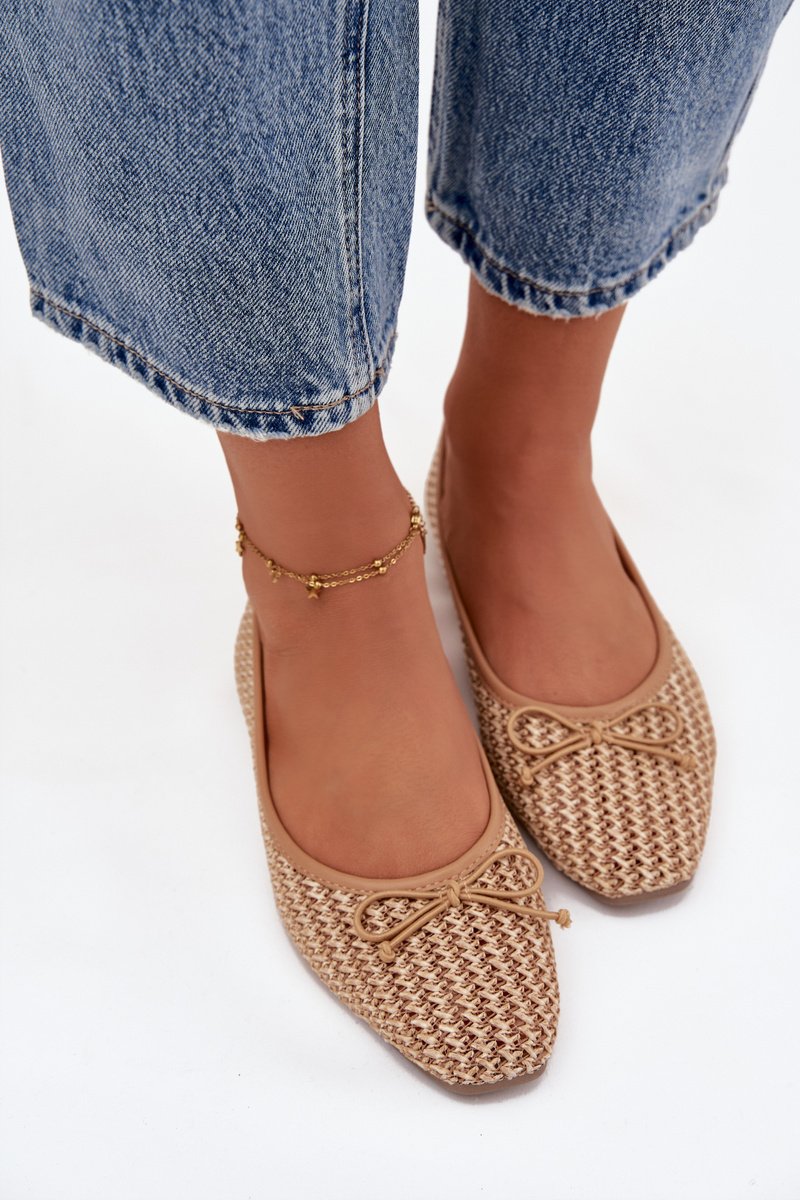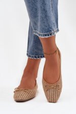 Damoskieros balerinos, pagaminti iš pintos medžiagos, yra lengvi ir stilingi batai, puikiai tinkantys kasdienai. Suapvalintų priekinių dalį turintis modelis atrodo klasikiškai ir moteriškai, o plokščias padas užtikrina patogumą avint. Priekyje yra žavingas raištelis kaspinėlio pavidalu, suteikiantis batams subtilų, mergaitišką charakterį. Vidus turi minkštą eko odos vidpadį, garantuojantį komfortą visą dieną. Puikiai tinka darbui, pasivaikščiojimui ar kasdieniams išėjimams. Renkantis dydį, vadovaukitės dydžių lentele.