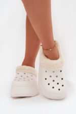 Moteriškos šlepetės pagamintos iš lengvos, putplasčio medžiagos. Vidus apšildytas minkštu, maloniu lietimui kailiu, kuris užtikrina šilumą ir išskirtinį dėvėjimo komfortą net ir ilgesnių pasivaikščiojimų metu. Modelis yra ant stabilaus platformos, kuri suteikia kelis centimetrus. Tai praktiškos ir madingos šlepetės, kurios puikiai tiks kasdienai – tiek prie miesto stiliaus, tiek prie laisvo, namų stiliaus. Rinkdamiesi dydį, vadovaukitės dydžių lentele.