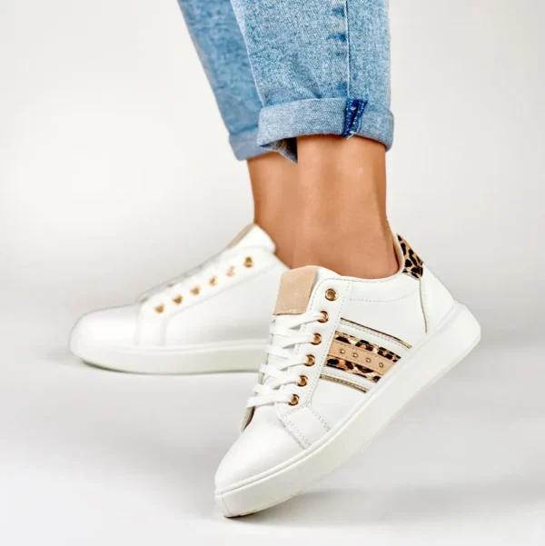 Balti moteriški sportiniai bateliai su subtiliais papuošimais