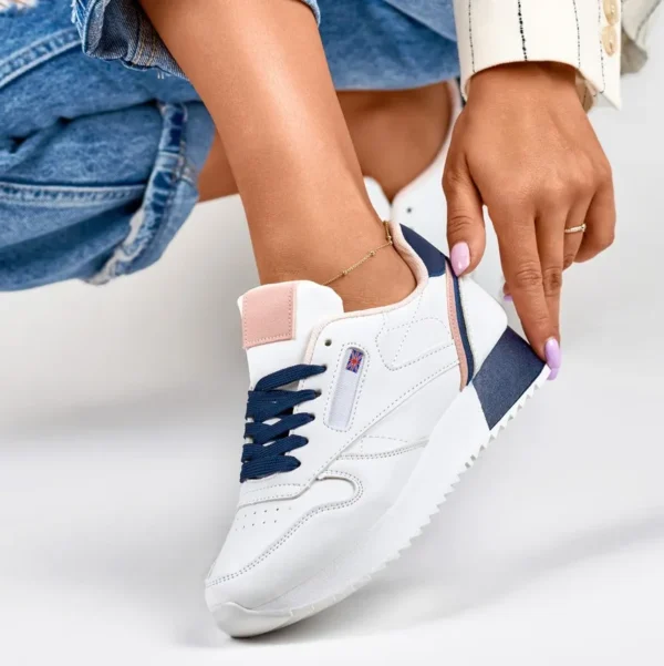 Baltos ir mėlynos spalvos klasikiniai moteriški sportbačiai