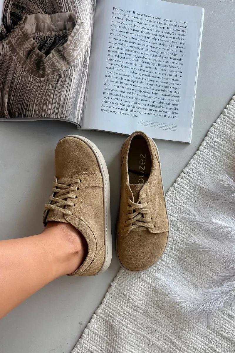“Zazu 314” sportiniai batai su natūraliu nabuku yra puikus pasirinkimas ieškantiems sveiko ir natūralaus judėjimo laisvės. Šis basų pėdų modelis sukurtas taip, kad kuo tiksliau imituotų natūralią pėdos funkciją. Plona ir lanksti padas leidžia geriau jausti paviršių, o plati priekinė dalis suteikia visišką laisvę ir komfortą pirštams, net ir ilgai dėvint. Natūralus nabukas užtikrina švelnumą ir ilgaamžiškumą, tuo pačiu garantuodamas stilingą ir šiuolaikišką išvaizdą. Šie batai yra idealiai tinkami kasdienai dėvėti.
