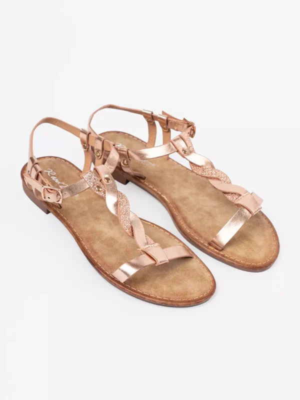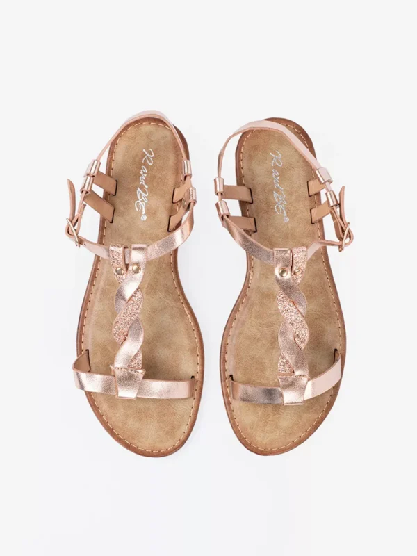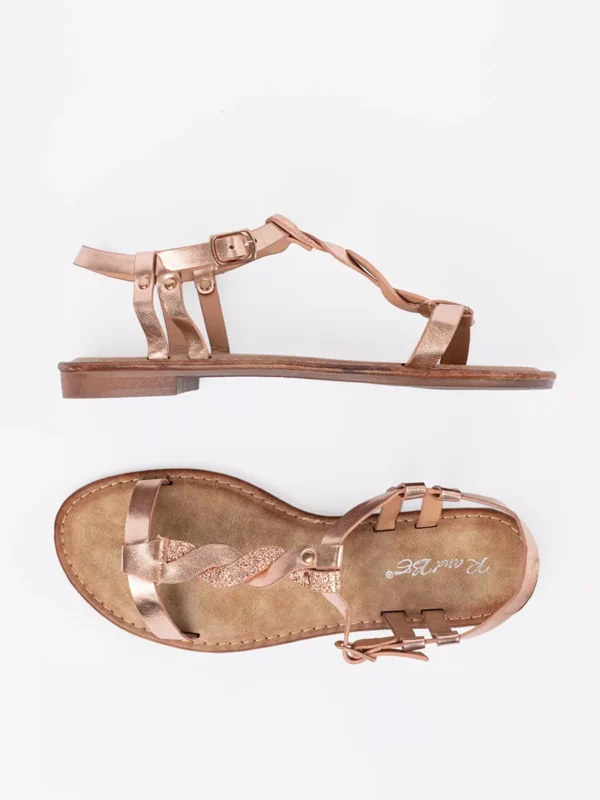Šios sandalai su blizgia rožine-aukso spalvos dirželiu yra puikus pasirinkimas ieškantiems elegantiško, bet kartu ir patogaus avalynės sprendimo. Pagaminti iš aukštos kokybės medžiagų, šie sandalai užtikrina ilgalaikį patikimumą bei komfortą, kuriuos reikėtų tikėtis iš premium klasės produktų. Derinkite prie įvairių stilių ir praturtinkite savo garderobą šia madinga detale.