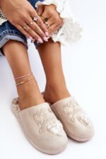 Minkšti šlepetės su gėlėmis, smėlio spalvos Selinne