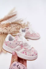 Blizgūs sportiniai batukai mergaitėms su raštuotu viršumi yra puikus pasiūlymas aktyvioms dienoms. Užsegami lipduku ir suvarstomi raišteliais, jie puikiai priglunda prie pėdos, o jų išskirtinė išvaizda patraukia dėmesį. Blizgios medžiagos ir įdomaus rašto derinys daro batus madingais ir funkcionaliais. Puikiai tinka kasdienėms stilizacijoms, į darželį, mokyklą ar žaidimams lauke. Renkantis dydį, prašome vadovautis dydžių lentele.