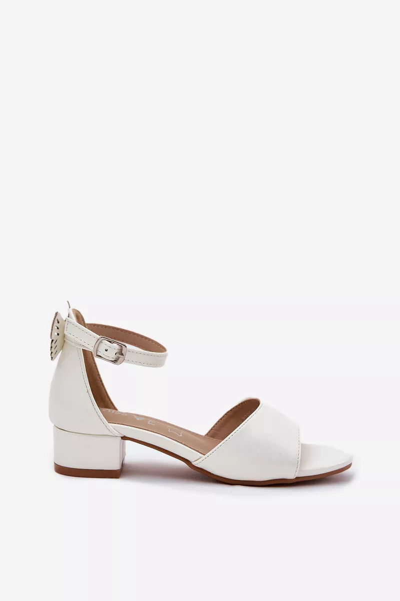 Blizgūs mergaičių sandalai su mažu baltu kulnu Ainare