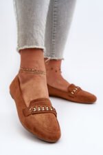 Moteriški mokasinai iš eko zomšo. Puošti blizgančiu siūlu ir dirželiu su grandinėle. Šis modelis puikus pasirinkimas kiekvienai stilingai moteriai. Minkštas vidpadis užtikrina patogumą visą dieną. Šie mokasinai puikiai papildys Jūsų vasaros garderobą, suteikdami kiekvienam įvaizdžiui nepakartojamo žavesio ir elegancijos. Renkantis dydį, prašome vadovautis dydžių lentele.
