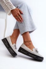 Moteriski mokasinai, pagaminti iš natūralios odos, S.Barski prekės ženklo. Platforma suteikia jiems madingo akcento, pabrėždama tiek stilių, tiek nešiojimo patogumą. Puikiai tiks kaip daugelio skirtingų stilių papildymas. Rinkdamiesi dydį, prašome vadovautis dydžių lentele.