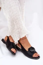 Moteriški sandalai su puošmena iš S.Barski kolekcijos sukurti tam, kad sujungtų rafinuotą eleganciją ir nepriekaištingą komfortą. Pagaminti iš aplinką tausojančios odos, jie yra puikus stilios ir natūralumo derinys. Šie juodos spalvos sandalai turi reguliuojamą diržą, kuris leidžia juos idealiai priderinti prie kojos formos, užtikrinant komfortą visai dienai.