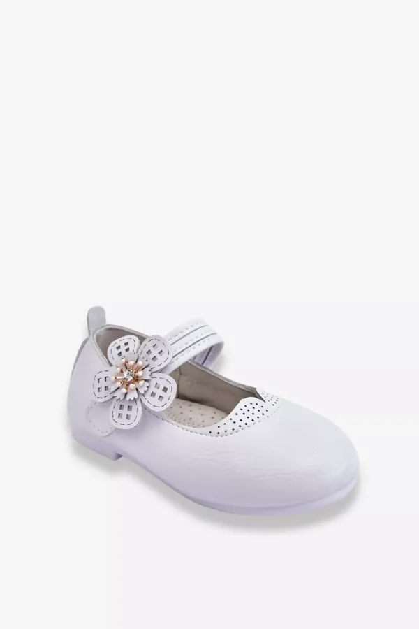 Klasikiniai vaikiški batukai pagaminti iš eko odos. Šis modelis turi lipduko užsegimą, papildomai papuoštą gėle su ažūriniais žiedlapiais. Batukai yra nepaprastai patogūs dėl profiluoto vidpadžio, pagaminto iš natūralios odos. Batukai turi plokščius kulniukus. Rinkdamiesi dydį, vadovaukitės dydžių lentele.