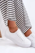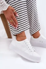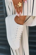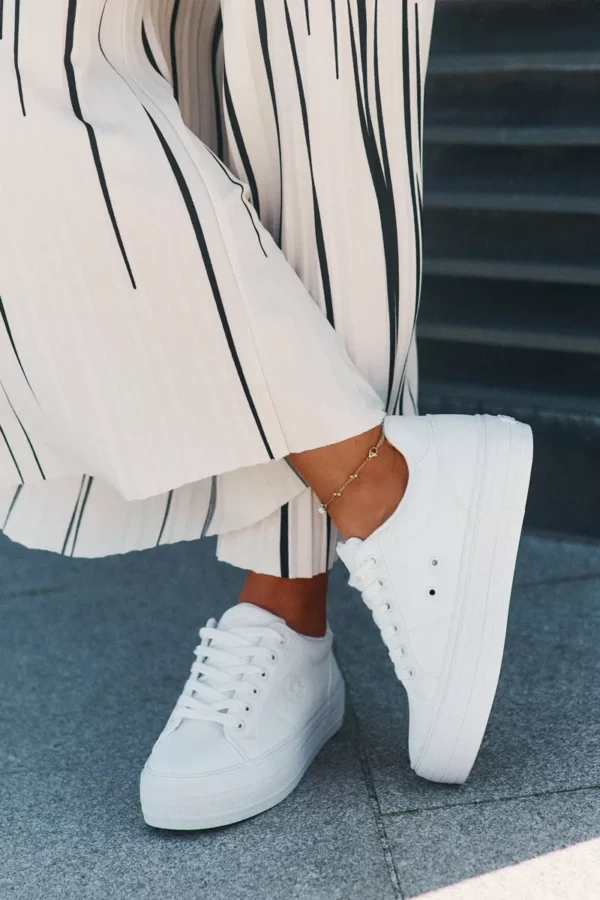 Šie platforminiai sportbačiai yra sukurti galvojant apie jūsų patogumą. Tvirtas, bet lankstus padas su platforma puikiai amortizuoja smūgius ir suteikia stabilumo, leidžiantis jaustis užtikrintai bet kokiu paviršiumi. Dizainas leidžia lengvai juos avėti ir nuimti, o tai yra didelis privalumas skubančiai kasdienybei. Nepriekaištinga apdaila ir aukštos kokybės medžiagos užtikrina ilgaamžiškumą, o universalus baltas atspalvis leidžia juos derinti su įvairiausiais drabužių deriniais – nuo džinsų ir šortų iki suknelių ir sijonų. Tai puikus pasirinkimas norinčioms atrodyti stilingai ir jaustis patogiai ištisą dieną.