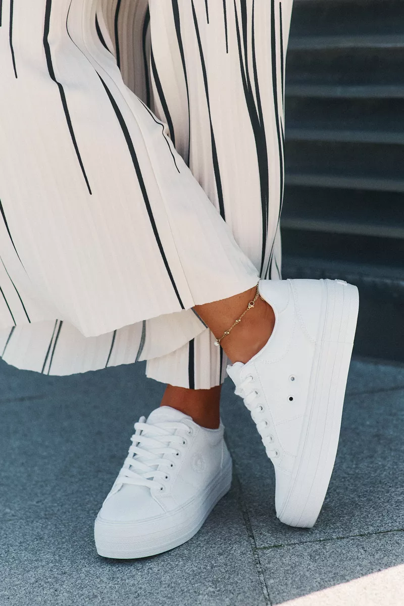Šie Big Star sportbačiai yra puikus pasirinkimas kiekvienai, vertinančiai madingą dizainą ir praktiškumą. Klasikinė balta spalva ir moderni platforma daro juos itin universaliais. Galite juos drąsiai dėvėti eidamos į darbą, susitikimus su draugais, savaitgalio išvykas ar tiesiog kasdieninės rutinos metu. Stilingas ir subtilus prekės ženklo akcentas suteikia batams solidumo ir išbaigtumo. Šie sportbačiai – tai investicija į jūsų gerą savijautą ir nepriekaištingą išvaizdą.