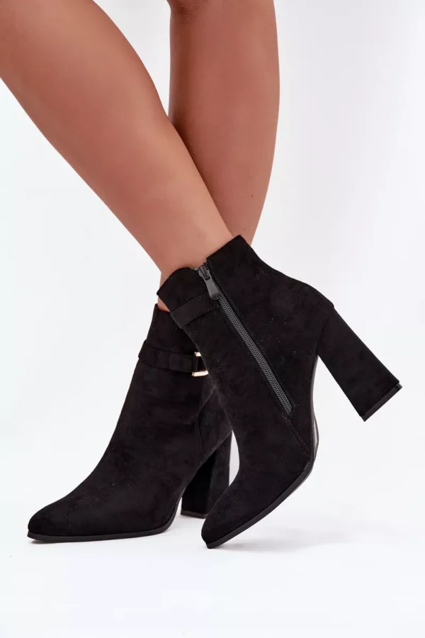 Moteriški pusbatai su stabiliu blokiniu kulnu. Šis modelis pagamintas iš ekologiškos odos. Vidus izoliuotas batų antklode. Užsegami užtrauktuku viršutinės dalies vidinėje pusėje. Kulno atrama sustiprinta. Smailūs pirštai optiškai pailgina kojas. Viršutinės dalies viršuje yra plonas dirželis su papuošimu. Renkantis dydį, prašome remtis dydžių lentele.