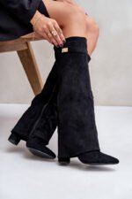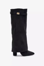 “Evyra” moteriški auliniai batai yra elegantiškas ir modernus pasirinkimas kiekvienai stilingai moteriai. Šie batai pagaminti iš ekologiškos zomšo medžiagos, kuri pabrėžia natūralumą ir rafinuotą stilių. Ypatingas modelio akcentas yra sulankstoma blauzdos viršutinė dalis su nuimamu dirželiu, kuri subtiliai dengia kulną ir suteikia batams išskirtinį raštą.