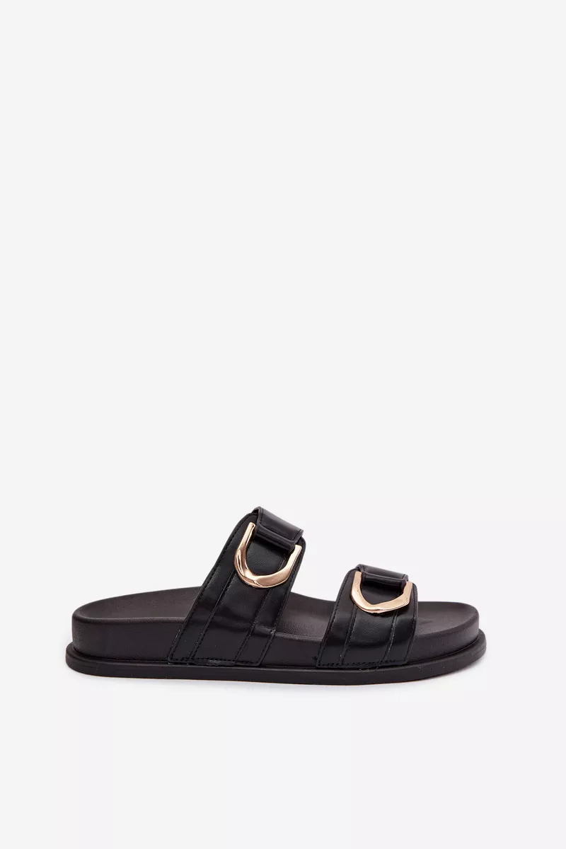 Paprastas, tačiau elegantiškas dizainas puikiai dera su įvairiausiomis aprangomis. Dvi priekinės dirželiai, dekoruoti auksiniais elementais, prideda elegancijos ir mados dvelksmo. Nedidelis kulniukas suteikia papildomą komfortą ir išskirtinumą, leidžiant jūsų žingsniams atrodyti lengviems ir grakštiems.