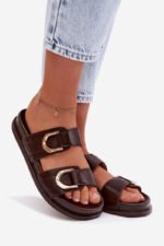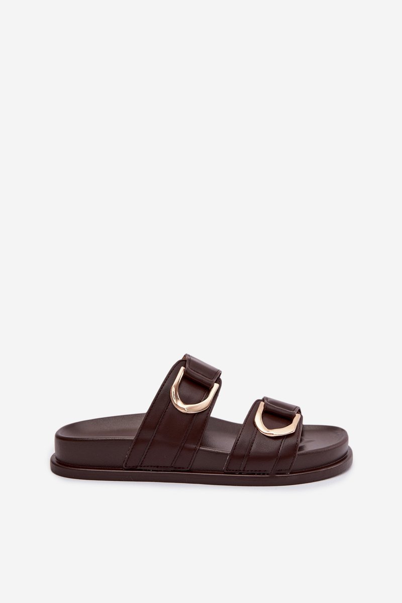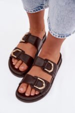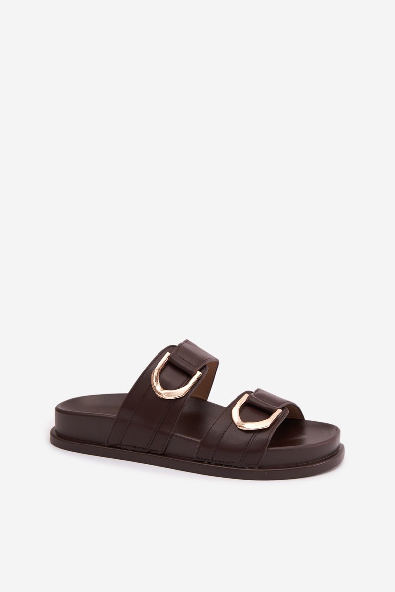 Ekologiškos odos moteriškos šlepetės su dirželiais, šokolado spalvos „Rosinessa“