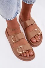 Stilingos moteriškos ekologiškos odos basutės yra patogus pasirinkimas šiltoms dienoms. Modelis yra pagamintas ant subtilios platformos, užtikrinančios komfortą ir subtiliai pabrėžiančios siluetą. Dvi juostelės priekyje, papuoštos aukso elementais, suteikia elegantiškumo ir madingumo. Šie šlepetės puikiai tinka kasdieniniams vasaros ansambliams. Renkantis dydį, prašome remtis dydžių lentele.