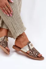 Šie eleganti sandalai, pagaminti iš natūralios odos, yra puikus stiliaus ir komforto derinys. Pagaminti ant plokščio pado, jie užtikrina patogumą visą dieną. Subtilus dekoratyvinis elementas ant sandalų viršutinės dalies suteikia jiems elegantišką išvaizdą. Idealiai tinka įvairioms progoms!