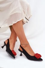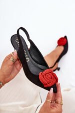 Elegantiškos moteriškos basutės, pagamintos iš natūralaus zomšos, yra subtilaus stiliaus ir nesenstančios elegancijos derinys. Jų smailūs priekukai optiškai prailgins kojas, o rožės aplikacija subtiliai puošia priekį. Plona stileto kulniukas ir atvira kulno dalis sukuria jausmingą, bet kartu ir klasikinį akcentą. Šios basutės bus puikus pasirinkimas vakariniams susitikimams ar ypatingoms progoms. Renkantis dydį, prašome vadovautis dydžių lentele.