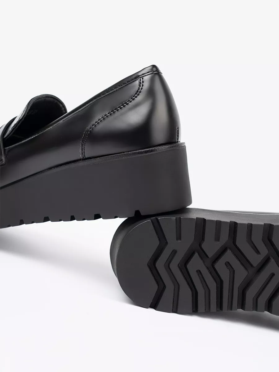 Šie juodi loaferiai yra tarsi tiltas tarp tradicijų ir šiuolaikinės mados. Klasikinis loaferio dizainas, pasižymintis subtiliomis siūlėmis ir aštriomis linijomis, dabar papildytas tvirtu, storu padu, kuris suteikia visai išvaizdai drąsos ir išskirtinumo. Šis dizaino sprendimas ne tik madingas, bet ir praktiškas: storas padas geriau izoliuoja nuo šalčio ir drėgmės, o dėl savo masyvumo jis atrodo stabiliai ir tvirtai. Kiekvienas žingsnis su šiais loaferiais bus užtikrintas ir stilingas. Jie puikiai tiks biurui, savaitgalio išvykoms ar vakariniams pasimatymams, visada užtikrinant solidų ir išbaigtą įvaizdį.