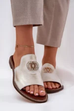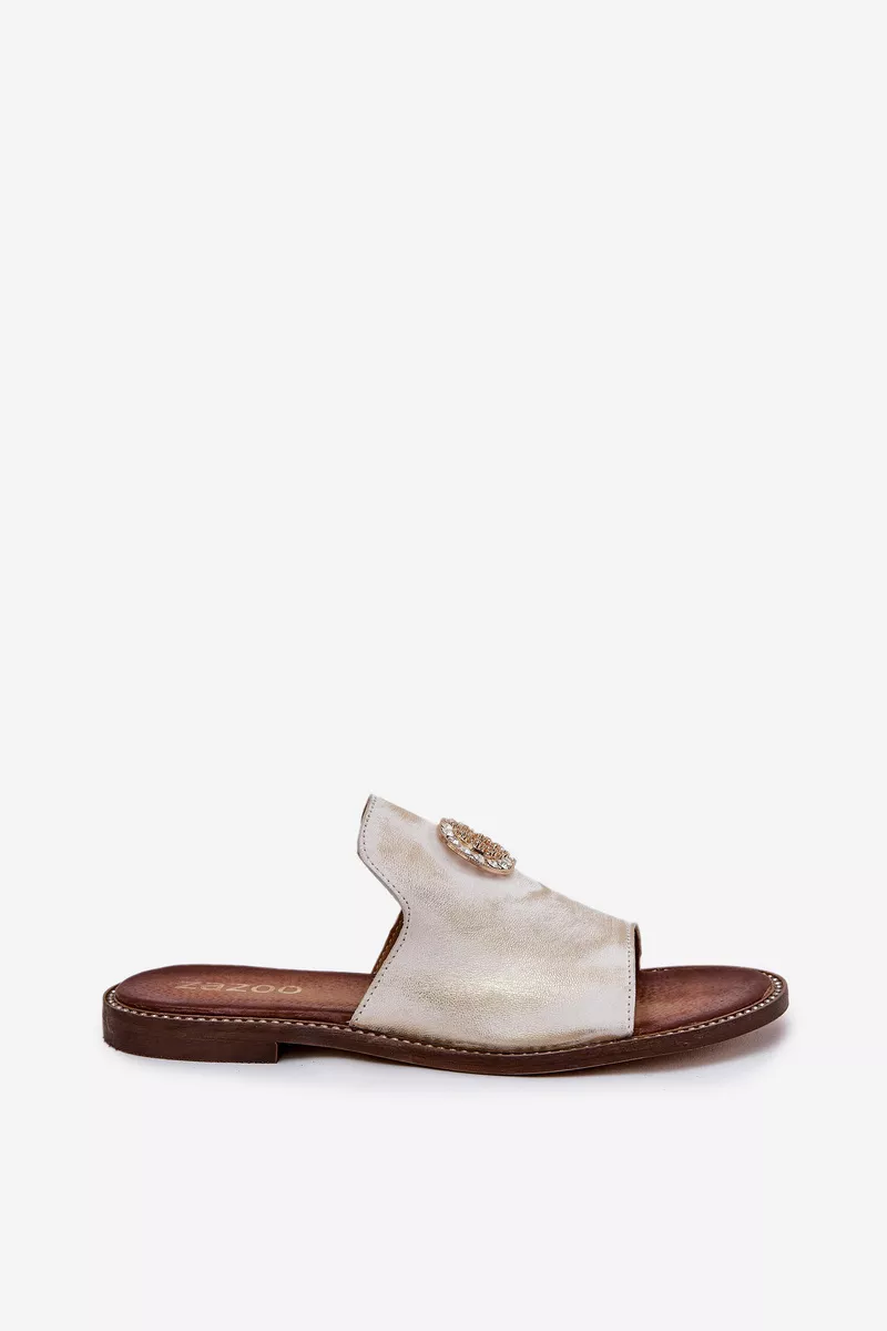 Elegantiškos moteriškos odinės šlepetės su Zazoo 3008 Aged Gold dekoracija