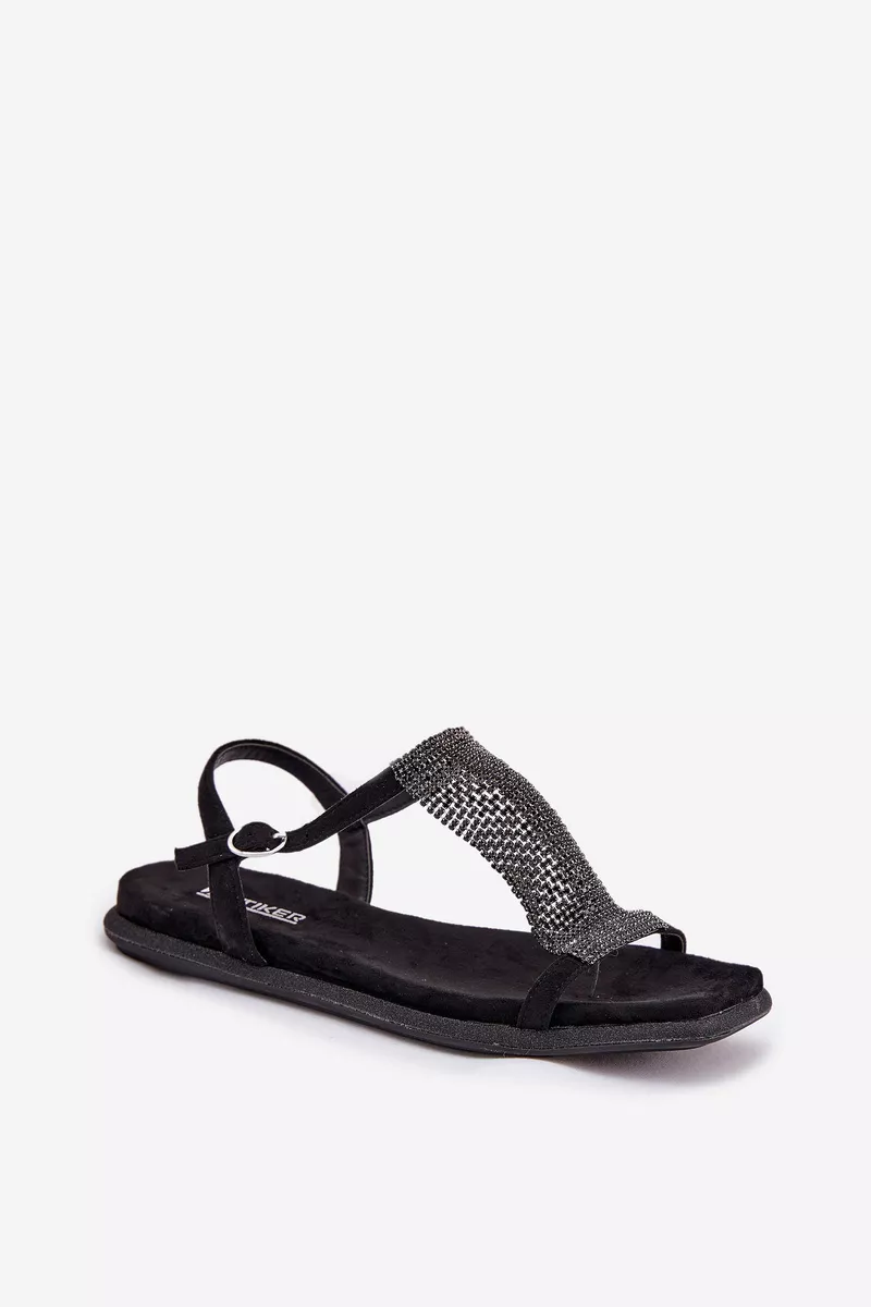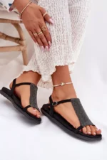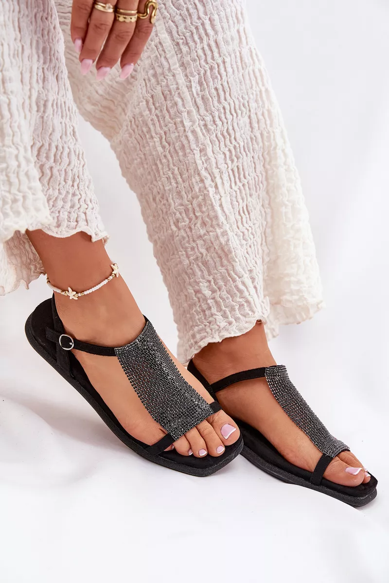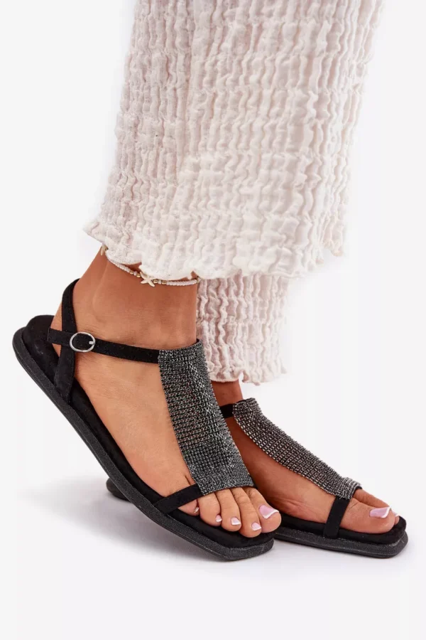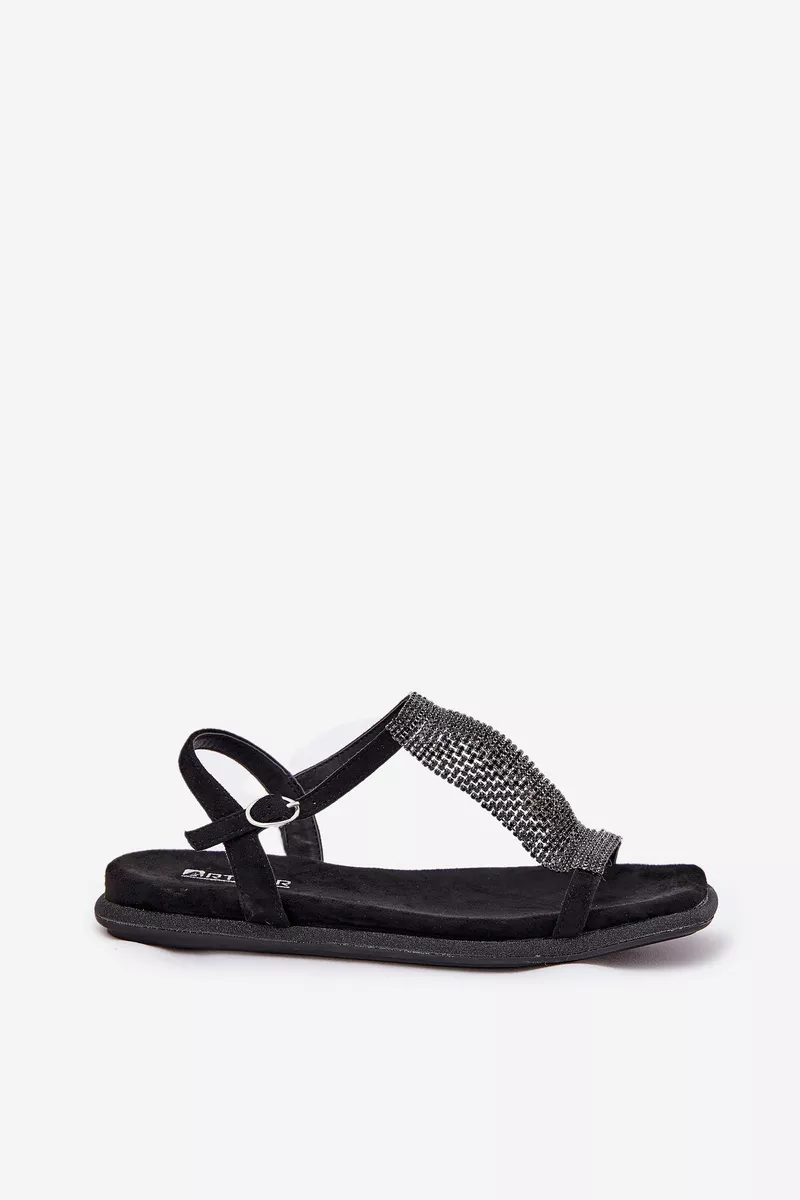 Plokšti elegantiška moteriški sandalai su kristalais „Artiker 56C1370“ yra puikus pasirinkimas ypatingoms progoms. Šie sandalai pasižymi reguliuojama dirželiu, užtikrinančiu tobulą pritaikymą ir komfortą visą dieną. Modelis išsiskiria akį traukiančiu dirželiu, dekoruotu kristalais, kurie suteikia elegancijos ir blizgesio.