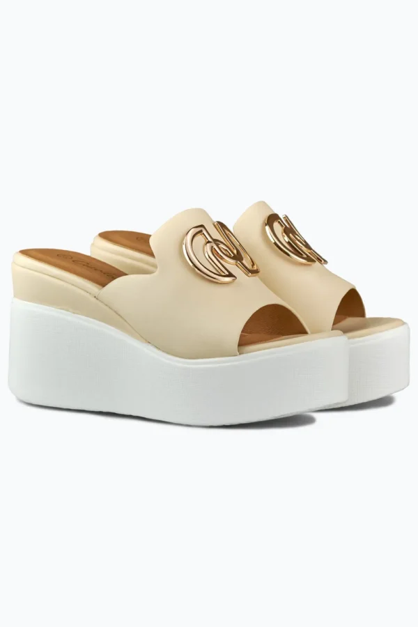 Elegantiškos smėlio spalvos moteriškos šlepetės ant platformų