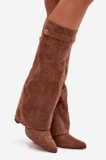 Rinkitės patogumą, eleganciją ir ekologišką kokybę su Eko zomšiniais ilgaauliais batais su atlenkiama apykakle ant stulpo!