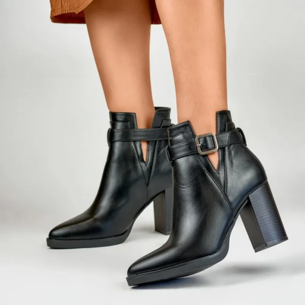 Iškirpti juodi moteriški batai su smailiu kulnu