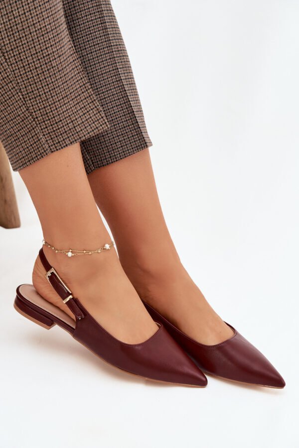 Elegantiškos moteriškos ekologiškos odos balerinos yra stilingas pasirinkimas bet kuriai progai. Smailūs pirštai gražiai pabrėžia pėdos liniją. Reguliuojamas dirželis su aukso spalvos sagtimi leidžia puikiai pritaikyti batelius prie pėdos ir yra patraukli detalė. Plokščias kulnas užtikrina komfortą visą dieną, todėl šie balerinos bateliai puikiai tinka kasdieniam nešiojimui, darbui ar susitikimams. Renkantis dydį, prašome remtis dydžių lentele.