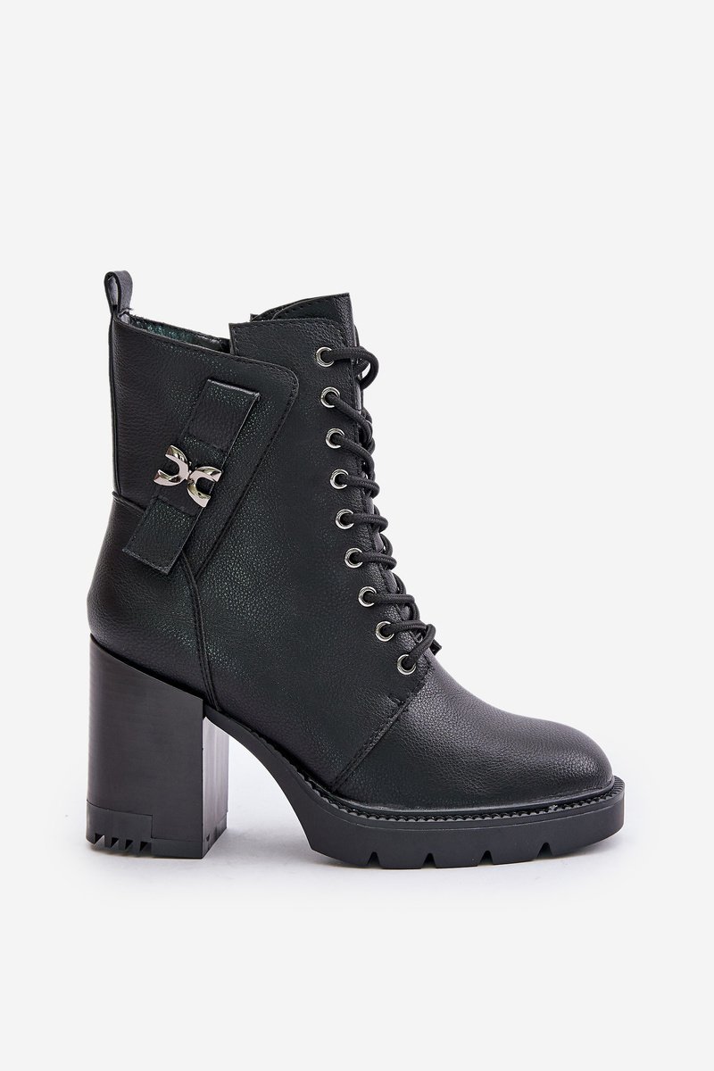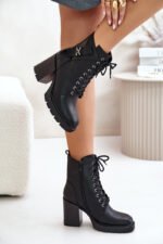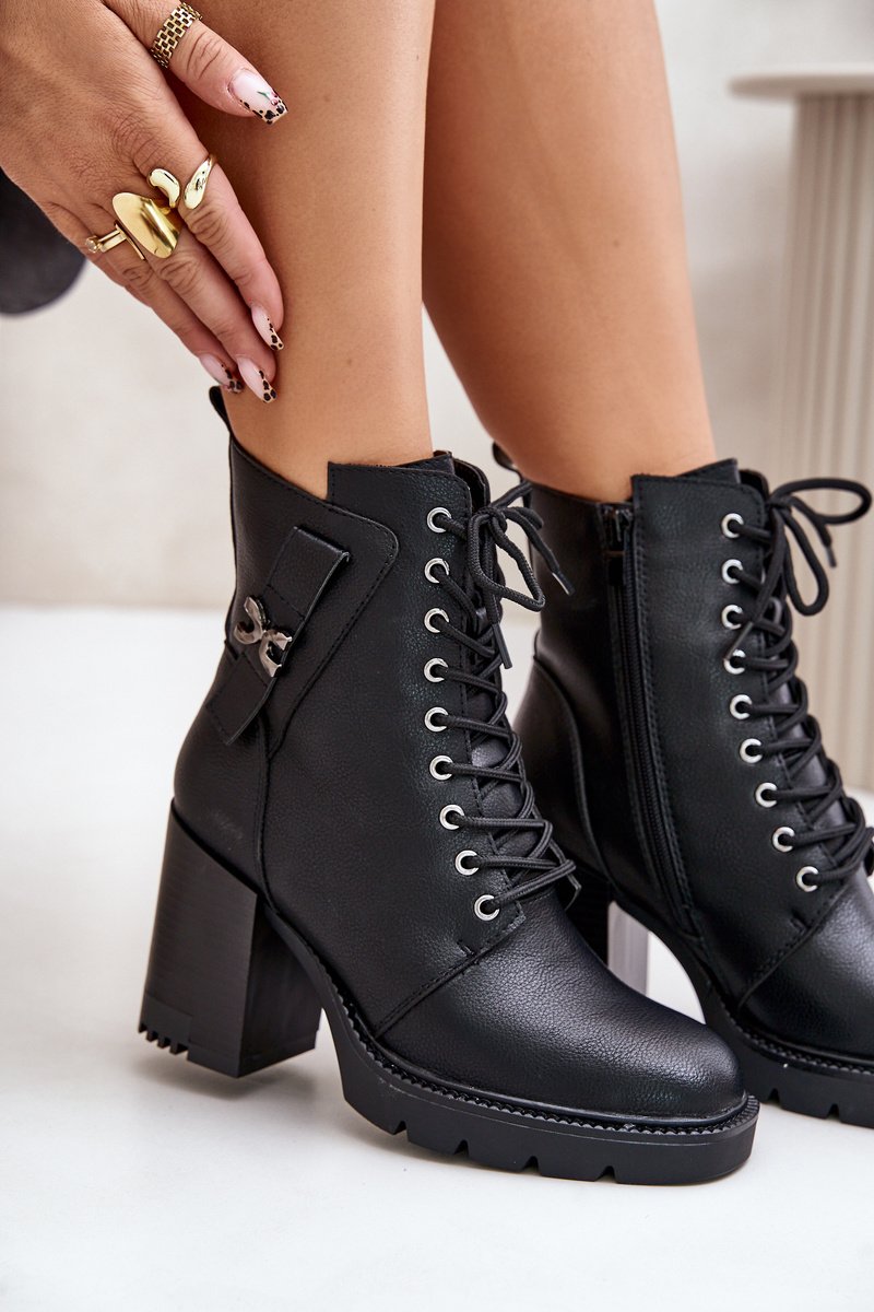 Aulinukai iš prekės ženklo Jezzi, pagaminti iš eko odos. Įmontuoti ant stabilaus stulpelio formos kulno. Modelis užsegamas užtrauktuku ir papildomai šnarinėjamas, o tai garantuoja idealų prigludimą. Apšildintas vidus užtikrina komfortą vėsesnėmis dienomis. Ant bato aulo yra stilingas dirželis, papuoštas auksine detale, kuri suteikia elegancijos ir pabrėžia unikalų charakterį. Renkantis dydį, prašome vadovautis dydžių lentele.