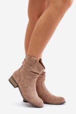 Izoliuoti batai su raukšlėmis ant žemo kulno, smėlio spalvos Elletinnia