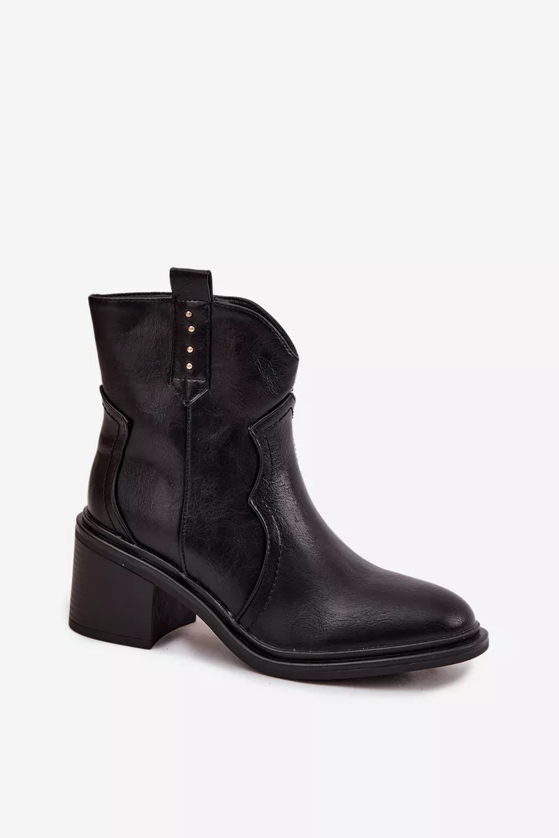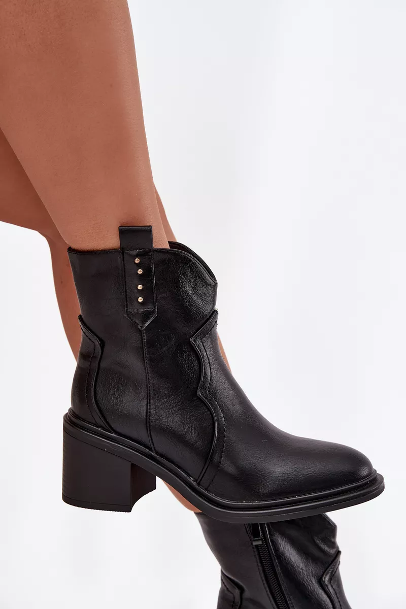 Moteriški kaubojaus stiliaus botai, pagaminti iš eko odos, yra pasiūlymas moterims, kurios vertina patogumo ir madingos išvaizdos derinį. Modelis yra ant masyvaus, stabilaus kulno, kuris suteikia aukščio figūrai ir tuo pačiu užtikrina komfortą vaikščiojant. Suapvalinti priekiai. Užsegami užtrauktuku, juos lengva apsiauti ir nusiauti, o minkštu apmušalu apšildintas vidus garantuoja šilumą vėsesnėmis dienomis. Tai stilingi botai, kurie puikiai dera prie dabartinių tendencijų – idealiai tinka tiek prie džinsų, tiek prie suknelių ar sijonų, sukuriant madingą, moterišką įvaizdį. Pasirinkdami dydį, prašome vadovautis dydžių lentele.
