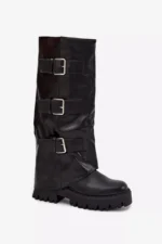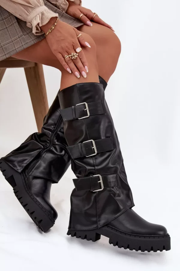 Šildomi moteriški batai su sidabrinėmis sagomis