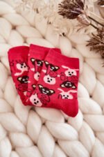 Kalėdinės vaikiškos kojinės su meškiuko ir alpakos vilnos raštais, raudonos