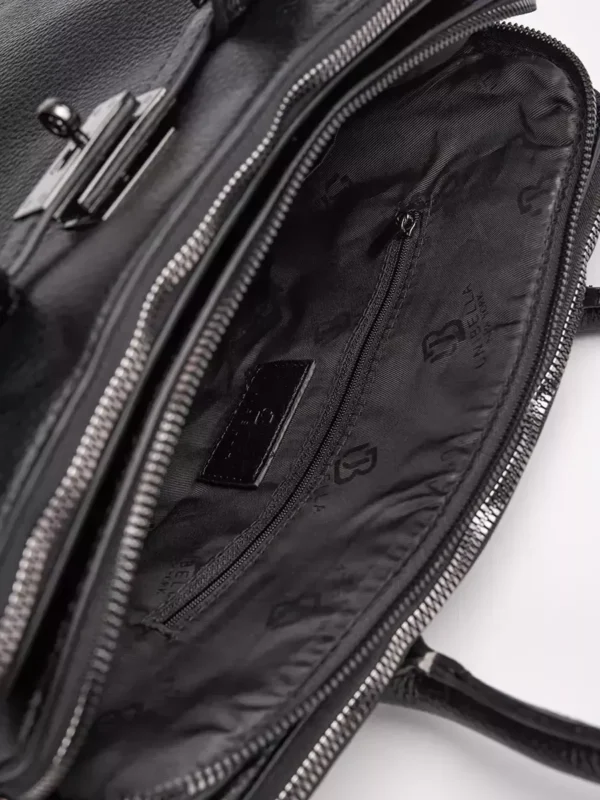 „UNIBELLA“ klasikinė juoda rankinė išsiskiria savo praktiškumu. Su trijų skyrių vidumi, kiekvieno dienos daikto laikymas tampa itin paprastas. Nesvarbu, ar tai yra jūsų prietaisai, kosmetika, ar dokumentai – kiekvienam daiktui yra savas kampas. Rankinė pagaminta iš aukštos kokybės medžiagų, užtikrinant ilgą naudojimo laikotarpį ir atsparumą kasdieniniam nusidėvėjimui.