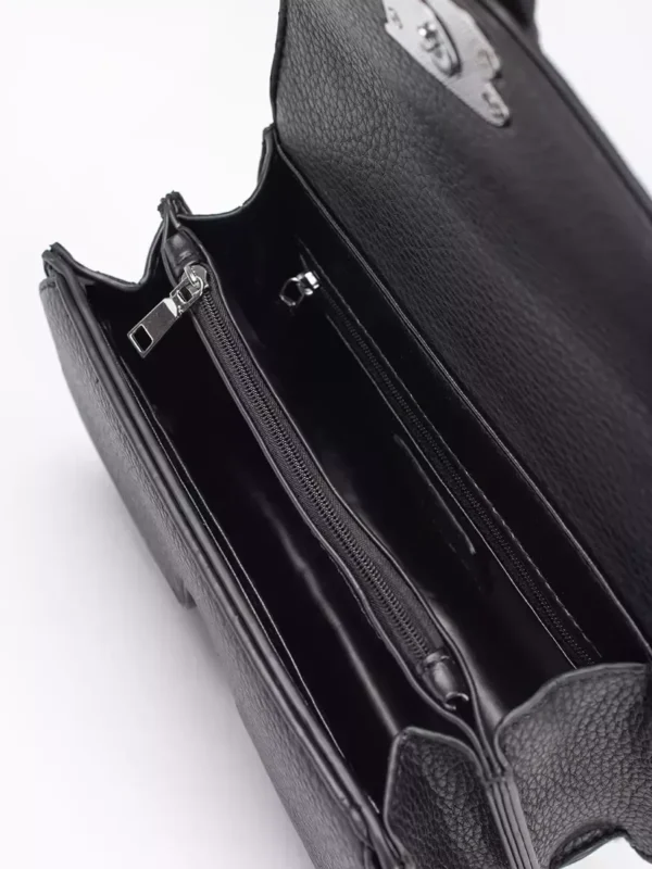 Šis juodas mažas peties krepšys išsiskiria savo elegantišku dizainu ir aukštos kokybės medžiagomis. Pagamintas iš ilgaamžės ekologiškos odos, jis suteikia ilgaamžiškumo jus dominančiam produktui. Be to, praktiška konstrukcija leidžia sudėti visus būtiniausius daiktus ir juos išlaikyti tvarkingai.